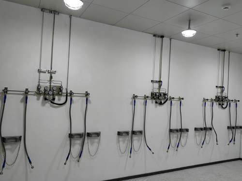 1.氣瓶間內壓設定面板開關與檢測窒內的氣路最終間并選擇SS316LBA管展開接入,給水管內從表面亮澤度為Ra<0.4umBA級給水管。